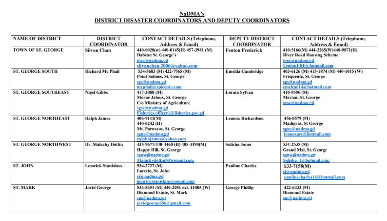 List of Emergency Shelters Grenada, Carriacou and Petite Martinique 2025-2026